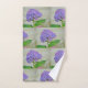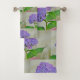 Este juego de toallas de baño incluye una flor de hidrangea de bonito.