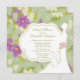 Comience su acontecimiento de la derecha con nuestra invitación nupcial de la ducha de las flores de moda que ofrece un fondo verde llenado de las flores púrpuras hermosas con una silueta de la novia. Invitación con clase y elegante para su ducha nupcial. Apenas modifique nuestra invitación para requisitos particulares con su información del boda y usted es todo fija para ir.