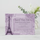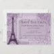 Anuncie su próximo día de boda con un parisino morado salve el anuncio de la fecha. El Save the Date cuenta con la Torre Eiffel, un pergamino en el que podrás detallar la información de tu ducha de novia adornada con damascos y sellos postales. También hay material de boda adicional disponible con este diseño. ¿Necesita ayuda con la personalización? Por favor, contáctame y elaboraré la redacción y los detalles para adaptarlos a su satisfacción.