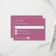 Envíe esta elegante y acuarela tarjeta de menú RSVP Pink MOD Calligraphy Púrpura con sus invitaciones para bodas y fiestas, incluyendo fiestas de graduación. con un fondo blanco. Consulte nuestra colección para ver la opción de la comida.