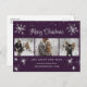Navidades de fotografía personalizados en color púrpura y plata con postales que incluyen un collage de fotos con estrellas, copos de nieve y un hermoso título de guión con letras a mano. Personaliza fácilmente esta foto con tu imagen y un nombre de familia. También puede agregar algo de texto a la parte posterior de esta postal.