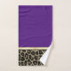 Un clásico patrón de impresión de piel de leopardo marrón en el fondo, a continuación un lazo dorado brillante que separa la huella de piel de la profunda sombra violeta para el contraste. Las vibraciones exóticas y elegantes.