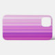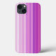 Estuche de iphone elegante con un patrón de rayas verticales púrpura, rosa y lavanda.