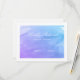 Una hermosa tarjeta de respuesta RSVP con un fondo de color azul y morado verde azulado. Personaliza fácilmente con tu información. Perfecto para un boda o Bat Mitzvah.