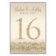Este moderno diseño de tarjetas de mesa presenta falsos acentos purpurinas de oro con fondo de champán. Perfecto para bodas elegantes y modernos. Las tarjetas de número de tabla llegan a 30.