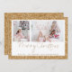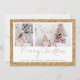 Purpurina de oro 2 guión de foto Feliz Navidad. Un toque de brillo con este falso diseño purpurina de borde con la coordinación de falso purpurina de oro en la parte trasera. Simplemente reemplace las dos fotos de ejemplo con las propias y personalícelas con su saludo y nombres en la parte inferior. Feliz Navidad está en un elegante guión.