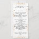 Personalice y añada su nombre, fecha, programa del día y menú de la cena. Fondo blanco, decorado con finos destellos de purpurina dorado.