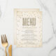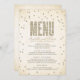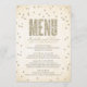 Este diseño moderno y elegante de la invitación a la ducha de novias de The Spoted Olive™ presenta una imagen de purpurina dorado con puntos de confeti sobre un fondo suave y templado con la palabra "MENU" rellena con una imagen de purpurina dorado. POR FAVOR, TEN EN CUENTA QUE ESTE DISEÑO INCLUYE UNA IMAGEN DE PURPURINA CONFETTI. NO HAY PURPURINA, CONFETTI O EMBALAZAMIENTOS. ESTE ES UN DISEÑO IMPRESO PLANO. DERECHOS RESERVADOS ©2014 The Spoted Olive™. Todos Los Derechos Reservados.