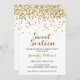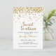 Haga clic en "¡Personalizar!" para mover/ajustar texto y colores. ¡Por el chica de cumpleaños que ama el oro, el purpurina y la ostentación! ¡Una forma verdaderamente divertida de invitar a la familia y amigos a un fiesta Sweet 16 con estilo y divertido! Con purpurina de oro falso (impreso plano). Artículos de coordinación también disponibles en mi tienda. ©2018 Bodas*n*Whimsy