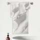 Este lujoso diseño se combina con el elegante mármol blanco y la agata gris cortada con un falso purpurina de oro.