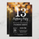 Invitación a los 13 años con Gold String Lights con fondo Purpurina Gold. Cumpleaños de Oro.Cumpleaños de niños. Invitar a niño o Chica Bday. 13. 15. 16. 18. 20. 21. 30. 40. 50. 60. 70. 80. 90. 100. Cualquier edad.