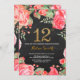 Invitación de 12º cumpleaños de Floral Roja para mujeres. Flor Floral Botánica de acuarela. Brillantina dorada. Fondo del tablero. Flores Florales De Peonies Rosados. Cumpleaños de la Chica de Niños Lady. Para una mayor personalización, haga clic en el botón "Personalizar" y utilice nuestra herramienta de diseño para modificar esta plantilla.