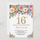 Invitación a los 16 Años Florales para Mujeres. Flor floral acuarela.Brillantina dorada. Rosa, Amarillo, Naranja, Flor Púrpura.Cumpleaños de niños. Chica Lady Adolescente Jueves.