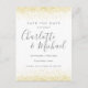 Diseñado para coordinar con nuestra colección boda Signature. Con nombres de estilo de firma y purpurina de oro, este elegante gris y blanco ahorran la tarjeta de fecha se puede personalizar con su información especial de fecha en letras grises de moda. Diseñado por Thisisnotme©
