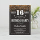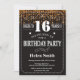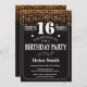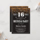 Invitación a los 16 años de Purpurina de oro. Tipografía blanca. Fondo del tablero negro y blanco. Cumpleaños de niños. Cumpleaños de hombres o mujeres. Invite a un niño o a una Chica. 13.º 15.º 16.º 18.º 20.21.30.40.50.60.70.80.90.100. Cualquier edad. Para una mayor personalización, haga clic en el botón "Personalizar" y utilice nuestra herramienta de diseño para modificar esta plantilla.