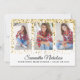 Purpurina de oro espumoso en la tarjeta de graduación de la Clase blanca de 2022 personalizada con 4 de sus fotos favoritas, su nombre, nombre de la escuela y clase