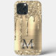 Elegante, moderno, purpurina de oro ondulado gotea un nombre personalizado personalizado y estuche de iphone monogramado. Este diseño presenta goteos espumosos de purpurina dorado sobre fondo metalizado cepillado dorado amarillo con plantilla de texto de monograma inicial y de primer nombre personalizada personalizado. Un regalo femenino perfecto para chicas y mujeres que aman las cosas de moda del bonito. Si necesitas ayuda o elementos coincidentes, por favor contacta conmigo.