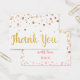 El diseño presenta un divertido y moderno confeti rosa y purpurina dorado. Personalice la parte posterior de la tarjeta con un mensaje de agradecimiento o deje la parte posterior en blanco para dejar una nota de agradecimiento escrita a mano. Estas tarjetas se pueden usar para una ducha de bebé, cumpleaños o cualquier evento especial.