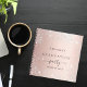 Un elegante fondo metálico de color rosa dorado con un polvo falso purpurina plateado. Personalice y agregue un nombre y la fecha. Se puede utilizar como libro de visitas o planear el fiesta.