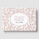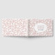 El purpurina de oro rosa moderno deja un libro de bodas. Este diseño presenta un bonito patrón de hojas y su redacción en un marco blanco con un contorno de oro rosa. La parte posterior incluye el mismo patrón de hojas de oro rosa.