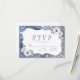 Faux brillante marco purpurina plateado y azul y guión "RSVP" con polvorientas flores azules y blancas, elegantes y elegantes. Ideal para bodas modernos, bodas románticos y bodas en el jardín botánico. Vea todas las piezas coincidentes de la colección a continuación.