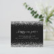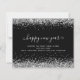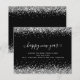 Tarjeta de Año Nuevo Feliz para el Purpurina de Plata de Presupuesto Black Happy. Un precio presupuestado alternativo de 4,5" x 5,6", en un ALMACENAMIENTO DE TARJETAS SEMI-GLOSS de 110 lb, de grosor similar al de una postal. Los sobres son un extra opcional y son algo más grandes que el tamaño de la tarjeta. Personalice fácilmente el texto a sus detalles.