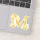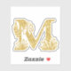 Elegante letra M del monograma del purpurina de oro. Esta letra M del purpurina monograma es un hermoso tono dorado de brillo y brillo. Las flores de bonito muestran ocasión especial y celebración. El pegatina de aspecto moderno se puede usar en tarjetas de felicitación, invitaciones de boda, tarjetas de agradecimiento, papel, envoltura de regalos y muchos más.