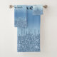 Purpurina de goteo azul de hielo congelado metálico impreso en Relieve metalizado falso en la parte superior e inferior, con un Monograma personalizado centrado en cada pieza. Toalla de baño, toalla de mano de huésped y tela de lavar disponible como Set, o vendida individualmente también. si desea omitir el monograma, simplemente elimine el contenido de los cuadros de texto y déjelos en blanco.