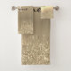 Purpurina de goteo de oro metálico impreso en Relieve metalizado falso en la parte superior e inferior, con un Monograma personalizado centrado en cada pieza. Toalla de baño, toalla de mano de huésped y tela de lavar disponible como Set, o vendida individualmente también. si desea omitir el monograma, simplemente elimine el contenido de los cuadros de texto y déjelos en blanco.