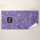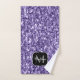 Personalice su nombre inicial y original, con una única toalla de baño falsa y brillante para ella. Hermosa muchacha ultravioleta morada purpurina chispa. ¡Foto de chispas violetas no purpurinas reales!