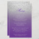 Cena / Menú almuerzo. Purpurina Púrpura y Plata del Día de la Boda Moderna. Productos coincidentes disponibles: 📌 Si necesita una mayor personalización, haga clic en el botón "Haga clic para más Personalizares" o "Personalizar o Editar diseño" y utilice nuestra herramienta de diseño para cambiar el tamaño, rotar, cambiar el color del texto, agregar texto y mucho más. ⭐ Este producto es un Personalizable del 100%. Los gráficos y / o el texto pueden ser agregados, borrados, movidos, cambiados de tamaño, rotados, etc... ⭐ el 99% de mis diseños en mi tienda se hacen en capas. Esto facilita el redimensionar y mover los gráficos y el texto para que encajen perfectamente en cada producto. 📌 (Asegúrese de cambiar el tamaño o mover los gráficos si fuera necesario antes de realizar el pedido) También puede "TRANSFER DESIGN" en otros productos de Zazzle y ajustar el diseño para que se ajuste a la mayoría de los artículos de Zazzle. (el botón está en el lado derecho de la página) Este diseño está hecho con vectores de alta resolución y/o gráficos digitales para una impresión profesional. NOTA 📌: (ESTA ES UNA IMPRESIÓN. Todos los diseños de Zazzle son "impresiones" a menos que se indique lo contrario en "Acerca de este producto" en el lado izquierdo de esta página) El diseño se imprimirá "EXACTAMENTE" como lo ves en la pantalla y en el producto...por lo tanto, asegúrese de que cuando realice sus cambios en el redimensionamiento de cualquiera de los gráficos o textos que encaja correctamente en las áreas y que su ortografía y su redacción sean como le gusta que sea en tamaño, color y fuente. Si tiene alguna pregunta sobre el "DISEÑO ÚNICAMENTE" o necesita ayuda, por favor contacte conmigo en ✉ siggyscott@comcast.net o visite el enlace de mi tienda: https://www.zazzle.com/store/designsbydonnasiggy (Copiar y Pegar) Estaré encantado de ayudar. 📌 TODAS LAS OTRAS PREGUNTAS (envío, reembolso, impresión no es correcta, el producto en sí, etc...) por favor contacte con Zazzle o el Maker ⭐ DIRECTAMENTE ⭐. Gracias por el apoyo y por parar por mi tienda - DesignsbyDonnaSiggy. © Donna Siegrist ⭐ ⭐ ⭐ ZAZZLE promete 100% de satisfacción. Si no te gusta absolutamente, ¡Zazzle se lo llevará de vuelta! ⭐ ⭐ ⭐ 1-888-8ZAZZLE (1-888-892-9953) Horas de teléfono: Lunes - Viajero: 9AM - 5PM PT (12PM - 8PM ET)