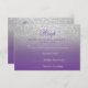 🥇 DISEÑO ORIGINAL DE ARTE DE DERECHOS DE AUTOR DE Donna Siegrist SÓLO DISPONIBLE EN ZAZZLE! RSVP. Purpurina morado y plateado. Productos de coincidencia disponibles - 📌 Si necesita una personalización adicional, haga clic en el botón "Haga clic para más Personalizares" o "Personalizar o Editar diseño" y utilice nuestra herramienta de diseño para cambiar el tamaño, rotar, cambiar el color del texto, agregar texto y mucho más. ⭐ Este Producto es 100% Personalizable. Los gráficos y / o el texto pueden ser agregados, borrados, movidos, cambiados de tamaño, rotados, etc... ⭐ el 99% de mis diseños en mi tienda se hacen en capas. Esto facilita el redimensionar y mover los gráficos y el texto para que encajen perfectamente en cada producto. 📌 (Asegúrese de cambiar el tamaño o mover los gráficos si fuera necesario antes de realizar el pedido) También puede "TRANSFER DESIGN" en otros productos de Zazzle y ajustar el diseño para que se ajuste a la mayoría de los artículos de Zazzle. (el botón está en el lado derecho de la página) Este diseño está hecho con vectores de alta resolución y/o gráficos digitales para una impresión profesional. NOTA 📌: (ESTA ES UNA IMPRESIÓN. Todos los diseños de Zazzle son "impresiones" a menos que se indique lo contrario en "Acerca de este producto" en el lado izquierdo de esta página) El diseño se imprimirá "EXACTAMENTE" como lo ves en la pantalla y en el producto...por lo tanto, asegúrese de que cuando realice sus cambios en el redimensionamiento de cualquiera de los gráficos o textos que encaja correctamente en las áreas y que su ortografía y su redacción sean como le gusta que sea en tamaño, color y fuente. Si tiene alguna pregunta sobre el "DISEÑO ÚNICAMENTE" o necesita ayuda, por favor contacte conmigo en ✉ siggyscott@comcast.net o visite el enlace de mi tienda: https://www.zazzle.com/store/designsbydonnasiggy (Copiar y Pegar) Estaré encantado de ayudar. 📌 TODAS LAS OTRAS PREGUNTAS (envío, reembolso, impresión no es correcta, el producto en sí, etc...) por favor contacte con Zazzle o el Maker ⭐ DIRECTAMENTE ⭐. Gracias por el apoyo y por parar por mi tienda - DesignsbyDonnaSiggy. © Donna Siegrist ⭐ ⭐ ⭐ ZAZZLE promete 100% de satisfacción. Si no te gusta absolutamente, ¡Zazzle se lo llevará de vuelta! ⭐ ⭐ ⭐ 1-888-8ZAZZLE (1-888-892-9953) Horas de teléfono: Lunes - Viajero: 9AM - 5PM PT (12PM - 8PM ET)