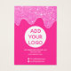 Una moda y un moderno purpurina de neón rosado gotea en la pantalla de un clip de pelo de joyería con marcadores de hoyos que se pueden mover, redimensionar o borrar. Añade tu logotipo. No hay cortes reales.