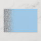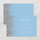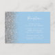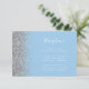El borde izquierdo de esta elegante y moderna tarjeta de la recepción de bodas incluye un diseño de purpurina falso plateado. El texto del personalizable combina la escritura a mano en blanco, las fuentes de copperplate y cursiva en un fondo azul bebé pastel. El reverso presenta un diseño purpurina azul y plateado a juego.