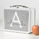 Lujoso Purpurina de Faux Plata y Sparkle Elegant Lunch Box. El Lunch Box se puede personalizar para incluir su nombre inicial y su nombre.
