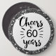 Un purpurina plateado anima el botón de los 60 años, que es genial por los 60 años, 60 años, etc. Tenga en cuenta que no hay purpurina real en este producto, sino un efecto de diseño.