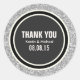 Personalizable Purpurina de Plata Gracias Pegatinas Redondos con diseños de Círculo Blanco Negro e Marfil. Muchos otros colores disponibles. Se puede usar para una variedad de eventos desde Bodas hasta cumpleaños y otros eventos de su elección.