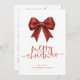 El Purpurina de Faux Rojo Bow 2026 Calendario Feliz Navidad. Disponible digitalmente e impreso. Feliz Navidad está en un guión elegante y personaliza tu nombre debajo. Un práctico calendario de 2026 está en la parte trasera.