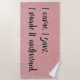 Secar en la playa o junto a la piscina con este divertido Purpurina rosado lo hice tortuoso. El diseño de toallas de playa incluye el texto "Vine. Vi. Lo hice incómodo". en una letra manuscrita. Se ofrecen regalos adicionales con este diseño y una variedad de colores.