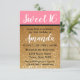 Luminoso rosa, oro purpurinoso, negro agudo, y completamente brillante: esta preciosa invitación dulce de 16 cumpleaños tiene todo el estilo divertido que estás buscando. Presenta un falso purpurina de oro con "sumergido" en efecto de pintura rosa dulce en la parte superior, cinturón negro y un contraste de textos blancos y negros. Personalizar los detalles, tipos de letra y colores para satisfacer sus necesidades. Este diseño coronará tu fiesta de cumpleaños con todo el glamour que tu dulce reina de dieciséis años podría pedir. ¡Prepárate para un fiesta y diviértete!