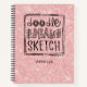 Un divertido purpurina de imitación rosa personalizado 8.5 x 11. Las palabras "doodle, draw, sketch" en un tipo de letra dibujado a mano personalizado con su nombre debajo y su nombre en la parte posterior. Personalizar el cuaderno de bocetos con el nombre de tu elección para hacer que alguien se sienta especial. Hace un regalo divertido para cumpleaños o Navidades. Viene en una variedad de colores. Diseñado para ti por Blackberry Boulevard.
