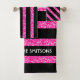 Moderno purpurina brillante rosa caliente y rayas negras, vertical horizontal y diagonalmente. Monograma personalizado