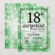 Sorpresa 18 cumpleaños con luz de cadena verde con fondo verde Purpurina. Cumpleaños Verde. Cumpleaños de adultos. Invitar el cumpleaños de hombres o mujeres. 13. 15. 16. 18. 20. 21. 30. 40. 50. 60. 70. 80. 90. 100. Cualquier edad.