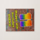 Este fascinante y vibrante arte urbano callejero y el diseño del rompecabezas inspirado en el graffiti de cumpleaños presenta un gran número de "11" con un colorido patrón inspirado en el gradiente del espectro del arcoiris, junto con el mensaje "Feliz cumpleaños número 11", y un nombre personalizado. El fondo tiene un patrón de pared de ladrillo. Un rompecabezas de cumpleaños vibrante y personalizado como este podría ser una manera divertida de enviar un mensaje de bienvenida de cumpleaños a alguien que está celebrando su undécimo cumpleaños. [~Z0000545]