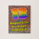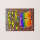 Este divertido y vibrante arte urbano callejero y diseño de rompecabezas inspirado en el graffiti de cumpleaños presenta un gran número "13" con un colorido patrón inspirado en el gradiente del espectro del arco iris, junto con el mensaje "Feliz 13 cumpleaños", y un nombre personalizado. El fondo tiene un patrón de pared de ladrillo. Un colorido rompecabezas de cumpleaños personalizado como este podría ser una manera divertida de ofrecer algunos deseos de cumpleaños a alguien que está celebrando su decimotercer cumpleaños. [~Z0000545]