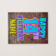 Este divertido diseño de rompecabezas con temática de cumpleaños presenta el mensaje "FELIZ CUMPLEAÑOS 14″, con un vibrante, colorido, grafiti y arte urbano inspirado en el arte callejero, además de un nombre de destinatario personalizado. El fondo está inspirado en una pared de ladrillo. Un divertido rompecabezas de cumpleaños personalizado como este podría ser usado para reconocer el décimo cuarto cumpleaños de alguien. [~Z0000532]
