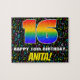 Este llamativo y alegre diseño de rompecabezas de cumpleaños presenta un gran número "16" con un patrón de gradiente inspirado en el espectro multicolor de arcoiris, junto con el mensaje "FELIZ 16º CUMPLEAÑOS", y un nombre de destinatario personalizado. El fondo presenta un patrón optimista de símbolos musicales con una variedad de colores y tamaños. Un enigma de cumpleaños alegre y personalizado como este podría ser usado para reconocer el decimosexto cumpleaños de alguien. Esto podría ser más significativo si esa persona es un músico, un compositor, un cantante o un amante de la música. [~Z0000608]