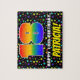 Este colorido y vibrante diseño de rompecabezas con temática de cumpleaños presenta un gran número de "18" con un patrón de gradiente inspirado en el espectro de arcoiris multicolor, junto con el mensaje "FELIZ 18º BIRTHDAY", y un nombre de destinatario personalizado. El fondo presenta un llamativo patrón de campo estrella multicolor. Un divertido rompecabezas de cumpleaños editable como este podría ser usado para celebrar el décimo octavo cumpleaños de alguien. [~Z0000607]
