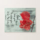 Inspiradora cita jigsaw puzzle representa una rama con hermosas hojas rojas de otoño y presenta la Biblia Verse 1 Tesalónica 1:4, "Dios te ama... Él te eligió para ser suyo"*.