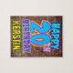 This fun birthday themed puzzle design features the message “HAPPY 20TH BIRTHDAY,” having a vibrant, colorful, graffiti-inspired appearance, plus a customizable recipient name. The background features a brick wall inspired pattern. A fun, customizable birthday puzzle like this might be a fun way to send a birthday greeting message to somebody who is celebrating their twentieth birthday. [~Z0000532]
